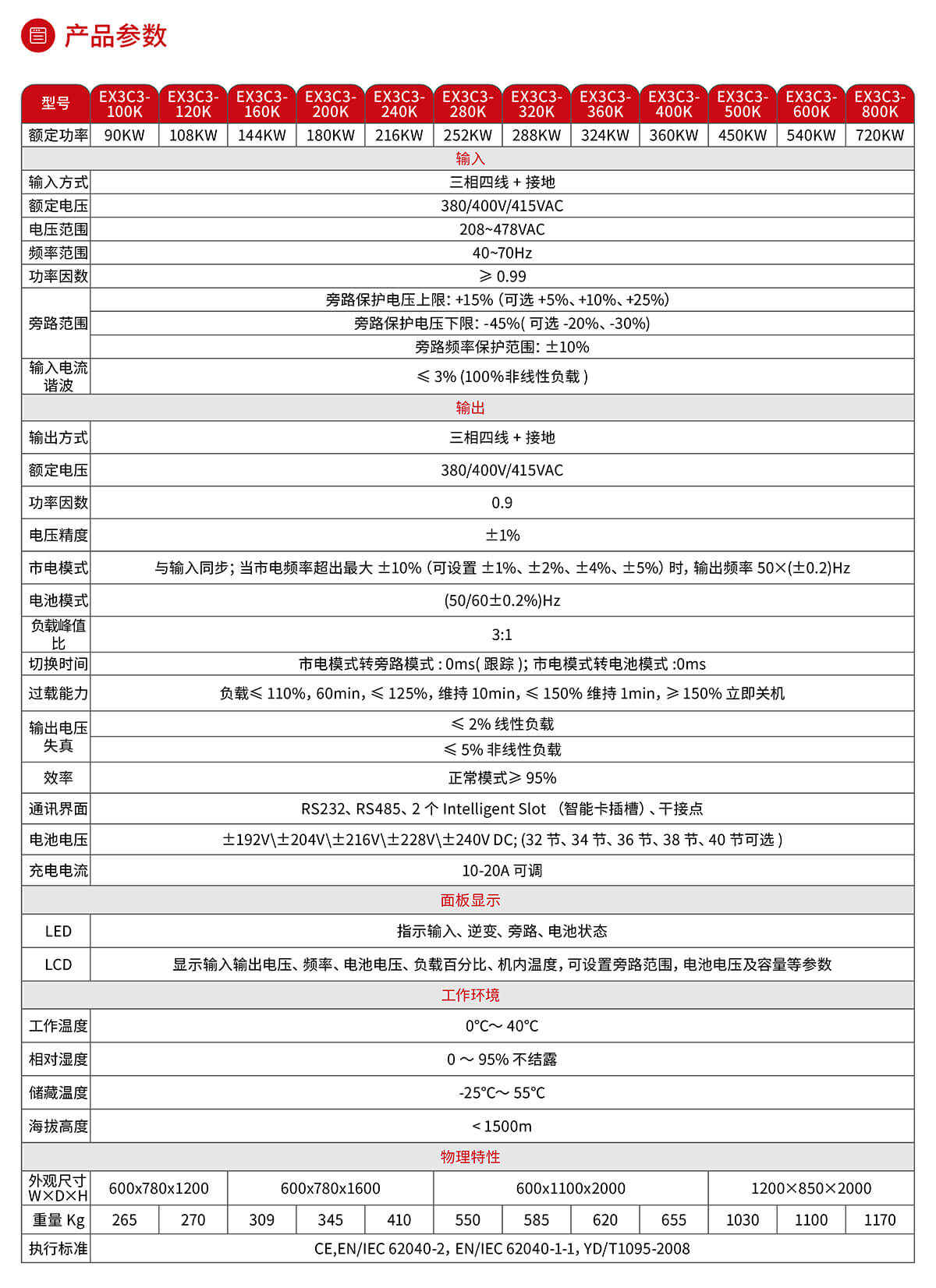 8、三進(jìn)三出純?cè)诰€雙變換式產(chǎn)品,支持380/400/415V,50/60Hz 電網(wǎng)體系,提供最合適的供電質(zhì)量與負(fù)載保護(hù);